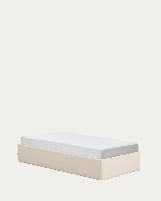 Sommier coffre déhoussable Nelzi en chenille écrue pour matelas de 90 x 200 cm FSC 100 %