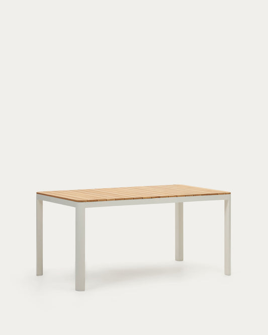 Table 100 % d'extérieur Bona bois de teck et aluminium finition blanche 160 x 90 cm