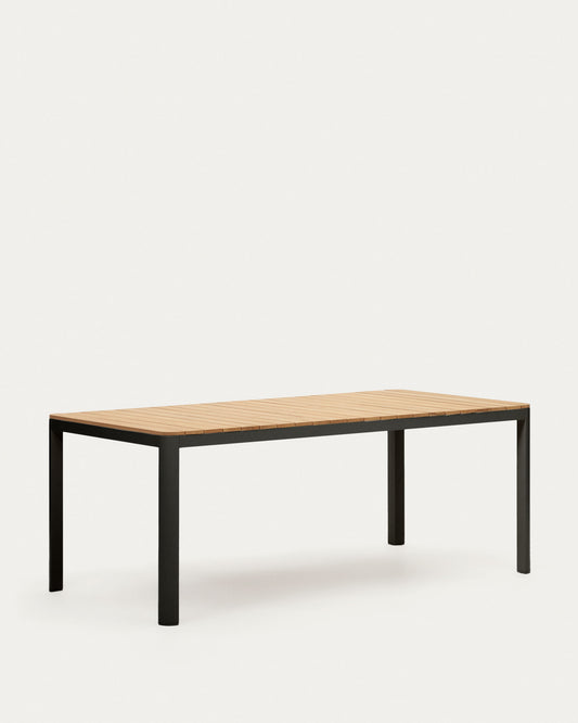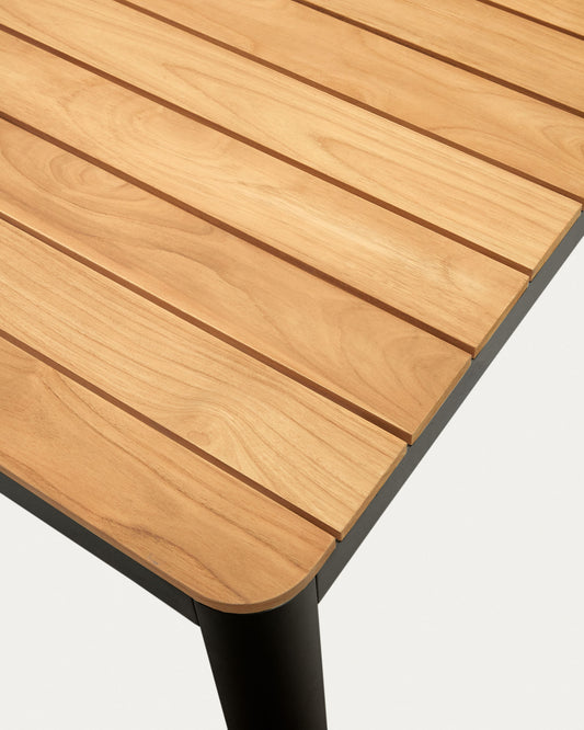 Table 100 % d'extérieur Bona bois de teck et aluminium finition noire 200 x 100 cm