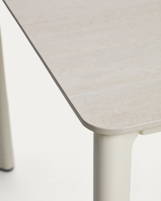 Table Anafi en pierre frittée et aluminium beige 180 x 90 cm