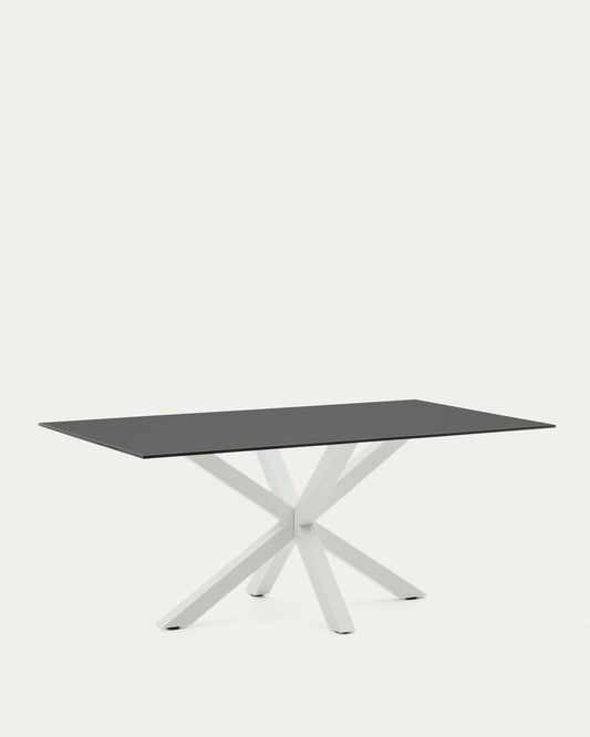 Table Argo 180x100 cm, epoxy blanc et verre noir