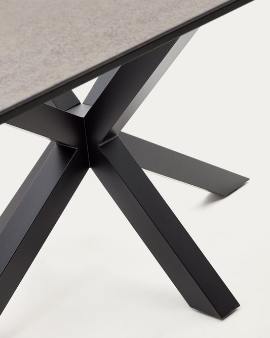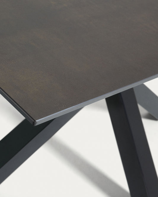 Table Argo en grès cérame Iron Moss et pieds en acier finition noire 200 x 100 cm