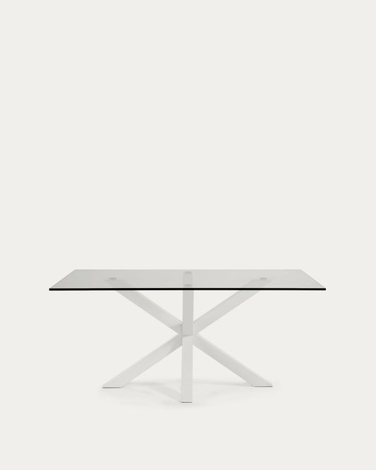 Table Argo en verre et pieds en acier finition blanche 180 x 100 cm