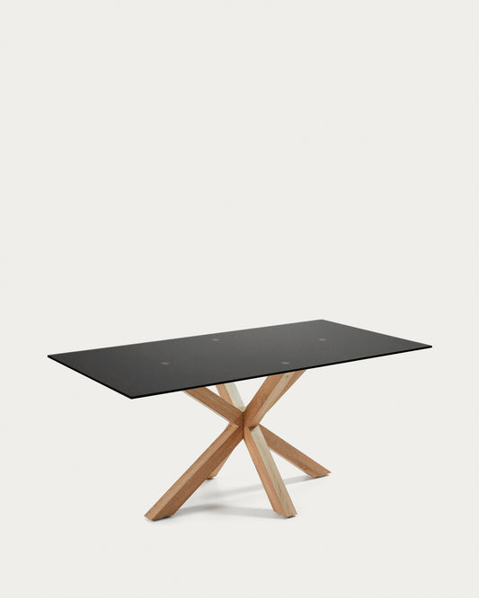 Table Argo en verre noir avec pieds en acier finition bois 200 x 100 cm