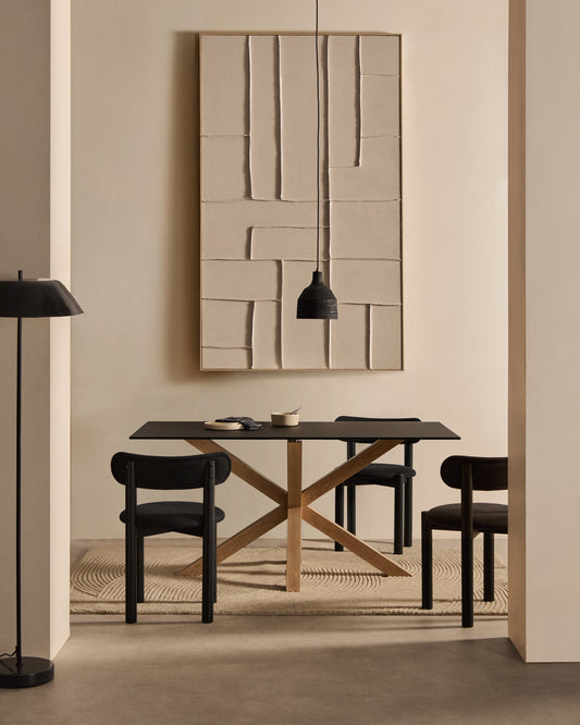 Table Argo en verre noir mat et pieds en acier effet bois 160 x 90 cm