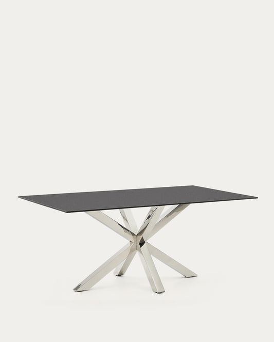 Table Argo en verre noir mat et pieds en acier inoxydable 180 x 100 cm