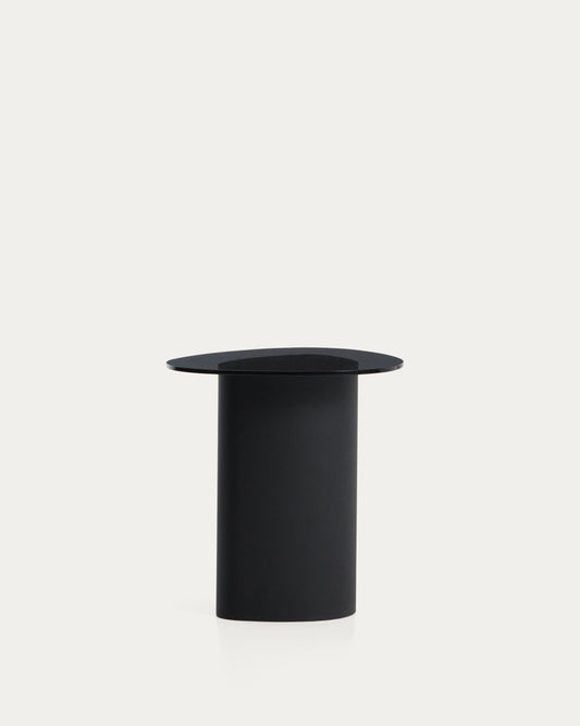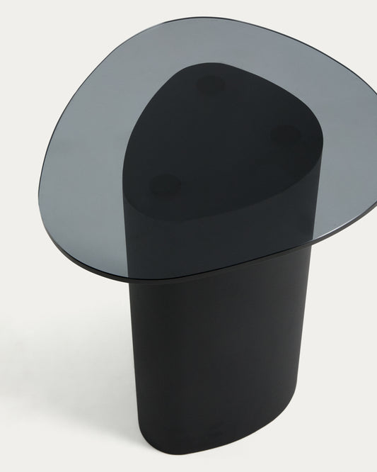 Table auxiliaire Olir en acier noir et verre trempé 48 x 46,8 cm