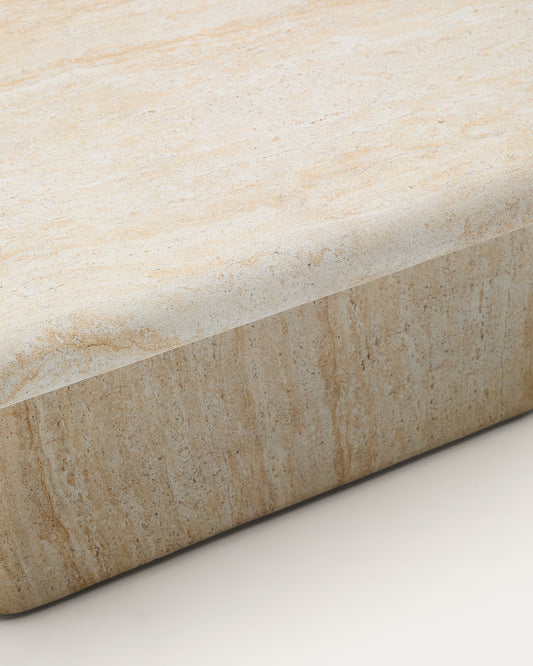 Table basse Drasi en ciment avec finition effet travertin 140 x 70 cm