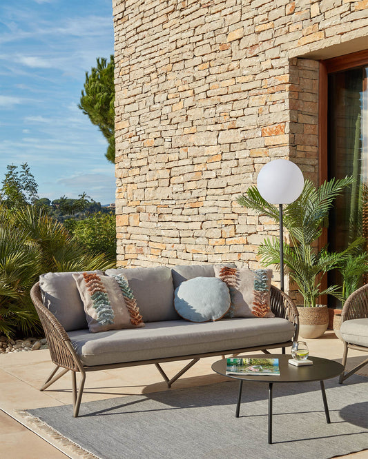Mathis est un design adapté aux extérieurs couverts, parfait pour profiter des beaux jours. Son plateau en fibre de ciment et ses pieds en acier galvanisé ajoutent une touche tendance à n'importe quel espace.
