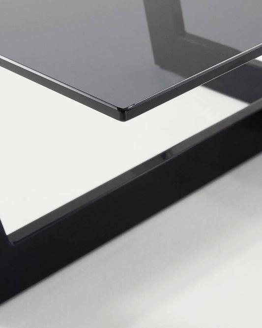 Table basse Plam en verre noir et structure en acier noir 120 x 70 cm