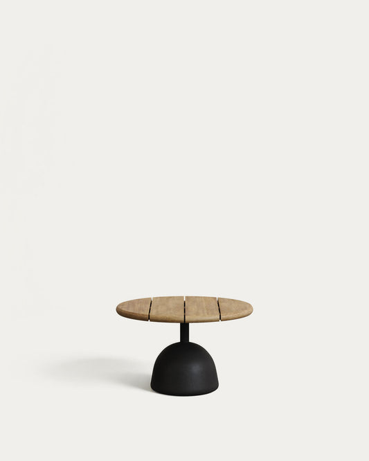 Table basse Saura en acacia avec finition naturelle et pied en ciment noir Ø55x35cm