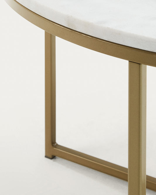 Table basse Sheffield en marbre blanc et pieds en acier finition dorée Ø 80 cm