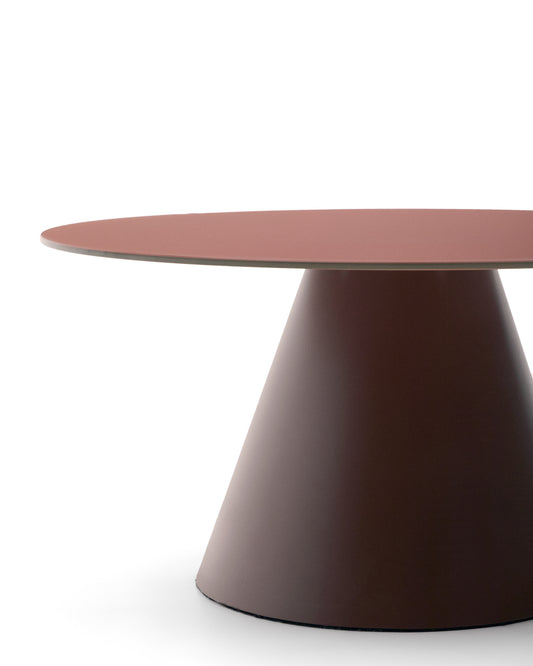 Table basse Wilshire en verre trempé dépoli et acier finition terracotta mat Ø80 cm