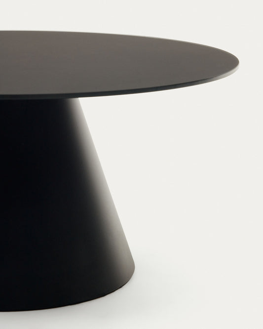 Table basse Wilshire en verre trempé et métal avec finition peinture noir Ø 80 cm