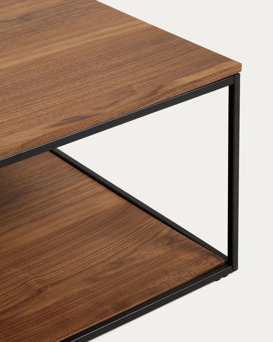 Table basse Yoana en placage de noyer et structure en métal noir 80 x 80 cm