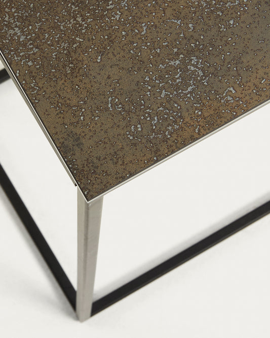Table d'appoint Rewena plateau en grès cérame marron et pieds en acier noir 45 x 30 cm