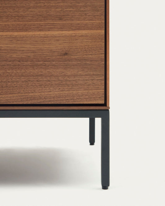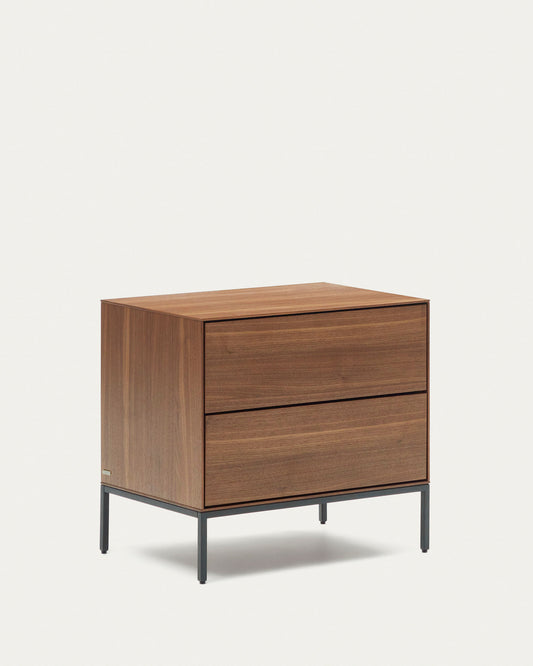 Table de chevet Vedrana 2 tiroirs placage de noyer et pieds en acier noir 60 x 55 cm