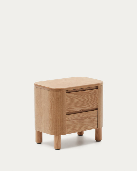 - Table de nuit en contreplaqué de frêne et pieds en bois massif de frêne.