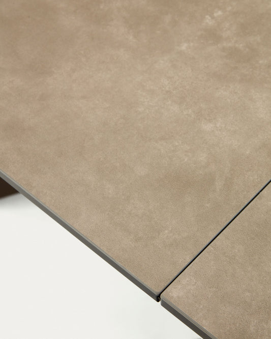 Table extensible Atminda en grès cérame et pieds en acier finition grise 160(210)x90 cm