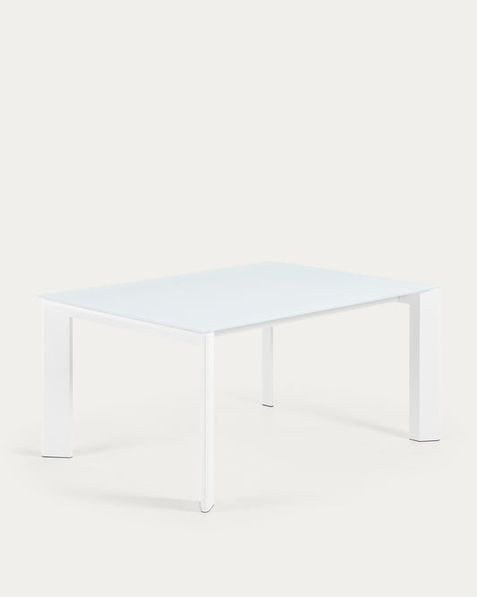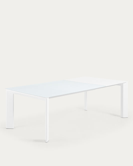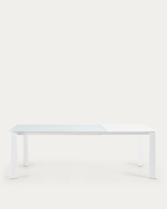 Table extensible Axis en verre blanc et pieds en acier finition blanche 160 (220) cm