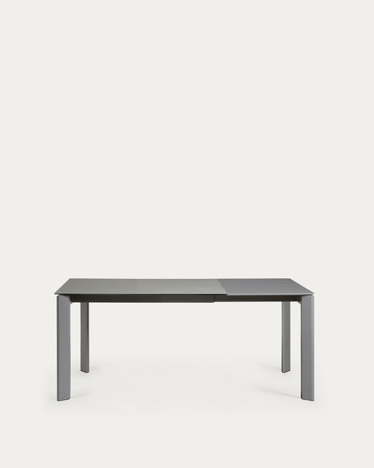 Table extensible Axis grès cérame finition Hydra Plomb pieds acier anthracite 120(180)cm