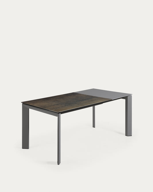 Table extensible Axis grès cérame finition Iron Moss et pieds acier anthracite 120(180)cm