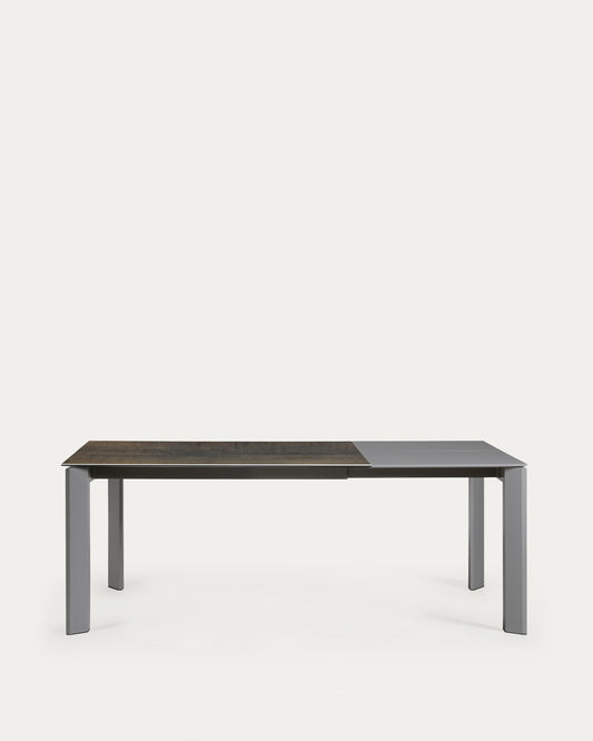 Table extensible Axis grès cérame finition Iron Moss pieds en acier gris foncé 140 (200)cm