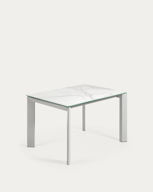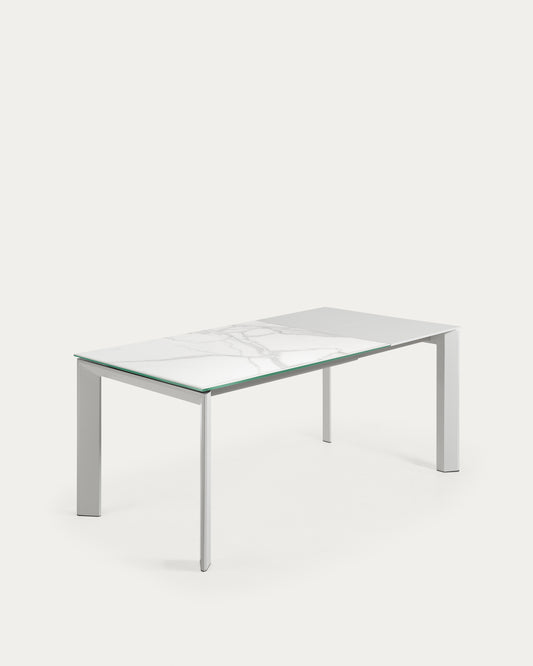 Table extensible Axis grès cérame finition Kalos blanche pieds blancs 120 (180) cm