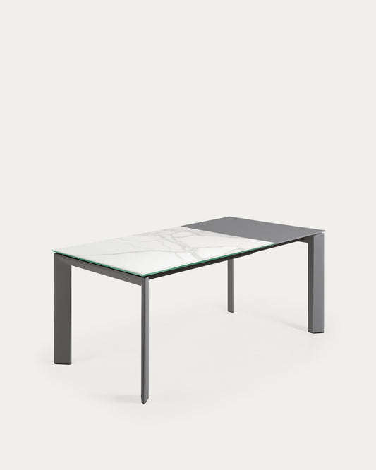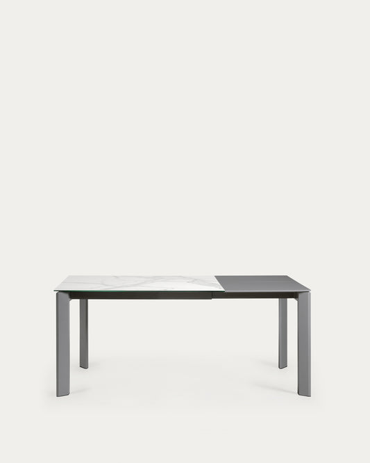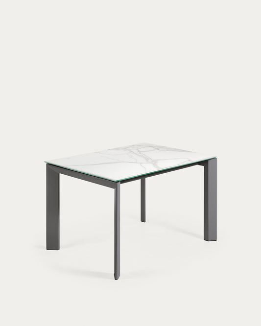 Table extensible Axis grès cérame finition Kalos blanche pieds gris foncé 120 (180) cm