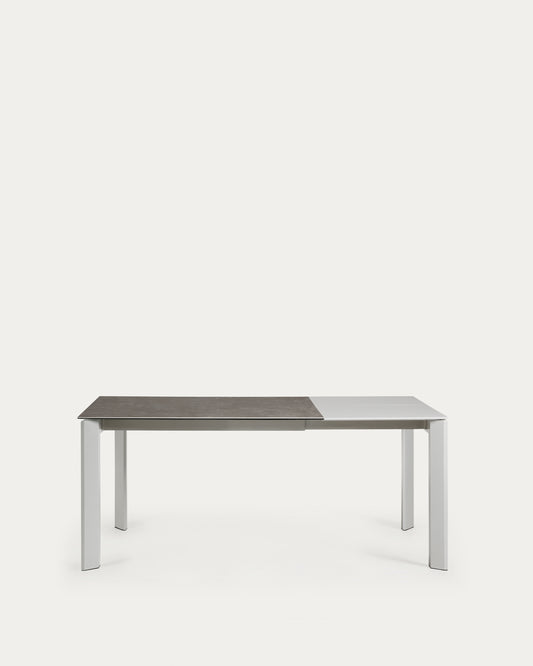 Table extensible Axis grès cérame finition Vulcano Cendrée et pieds acier gris 120(180)cm