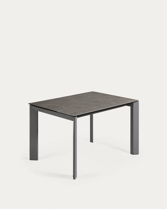 Table extensible Axis grès cérame finition Vulcano Cendrée pieds acier gris 120(180)cm