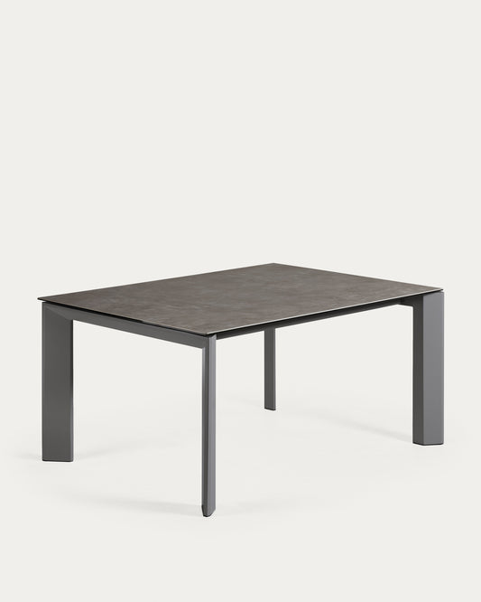 Table extensible Axis grès cérame finition Vulcano Cendrée pieds acier gris 160(220)cm