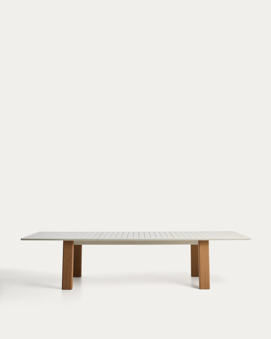 Table extensible Livorno en aluminium couleur écrue et pieds effet bois 233(350) x 100 cm