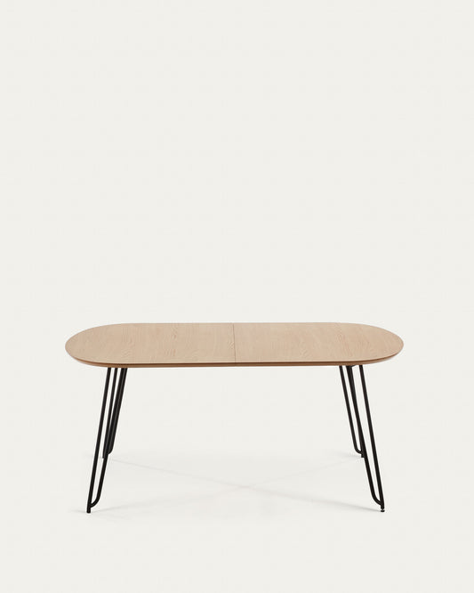 Table extensible Novac 170(320)x100 cm contreplaqué de chêne et pieds en acier noir