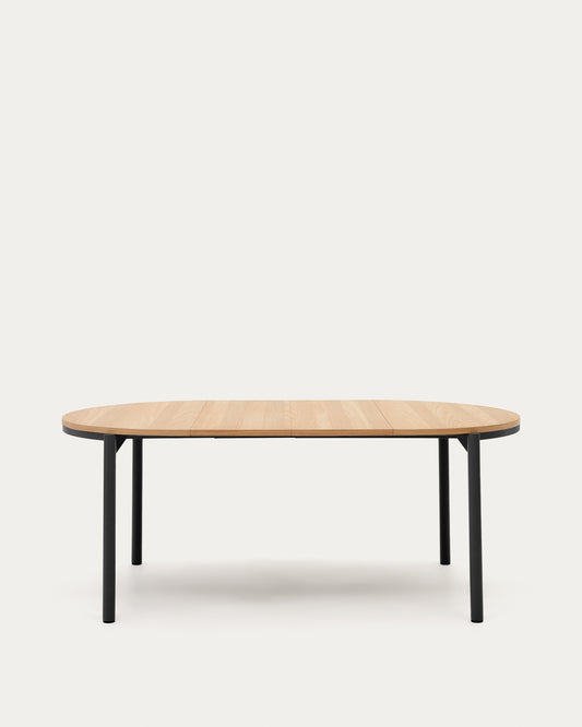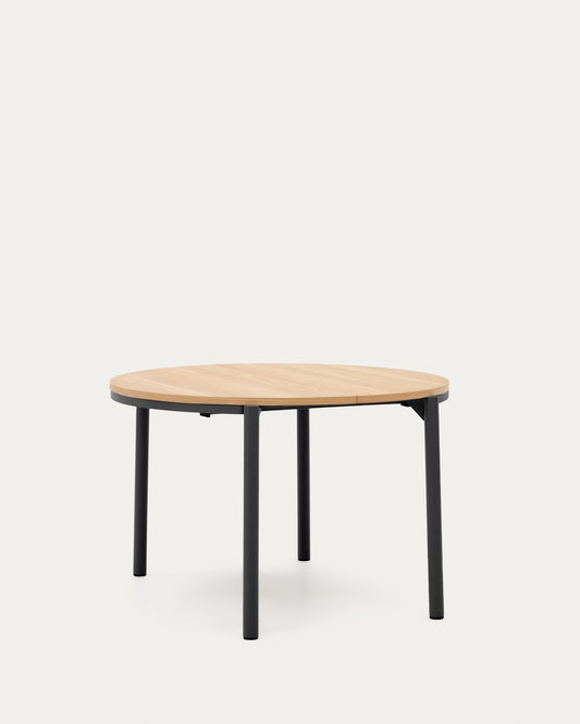 Table extensible ronde Montuiri placage en chêne et pieds en acier finition noire Ø 120 (200) cm