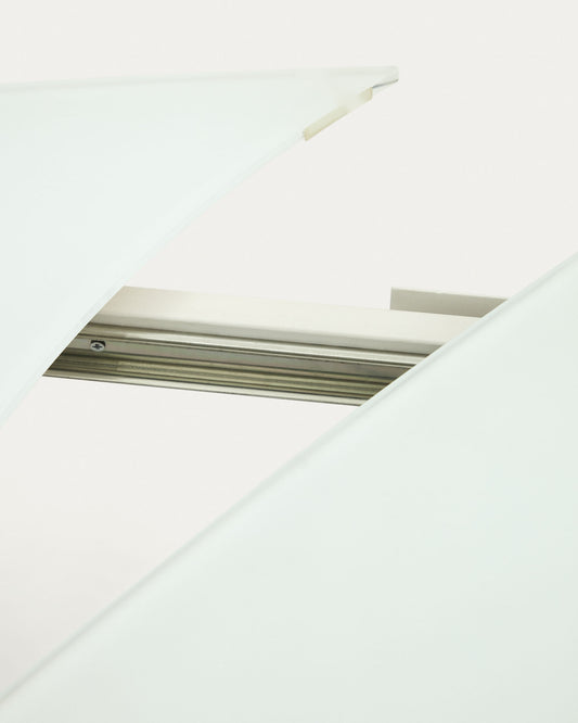 Table extensible Yodalia verre trempé et pieds en acier finition blanche 130 (190) x 100cm