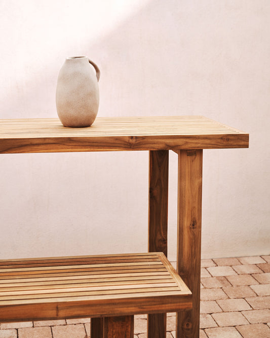 Table haute 100 % d'extérieur Canadell en bois de teck recyclé 140 x 70 cm