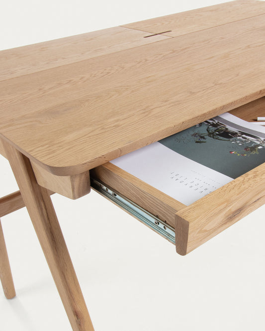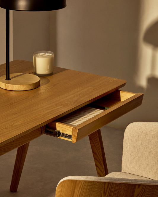 • Table avec deux tiroirs et un compartiment intérieur dans le plateau pour ranger et cacher les câbles.