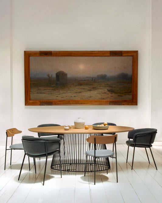 Table Leska 200 x 110 cm en manguier et pied en acier noir