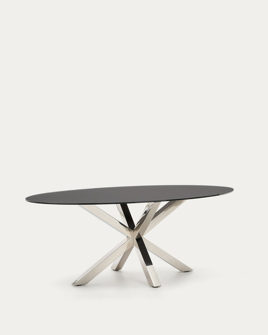 Table ovale Argo en verre noir mat et pieds en acier inoxydable Ø 200 x 100 cm