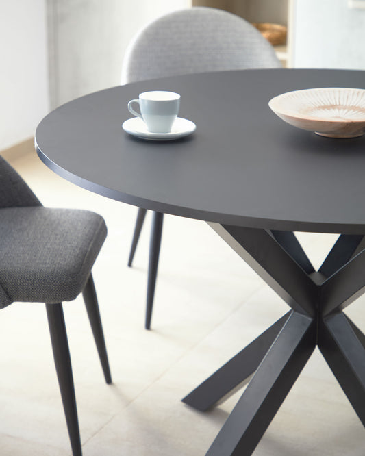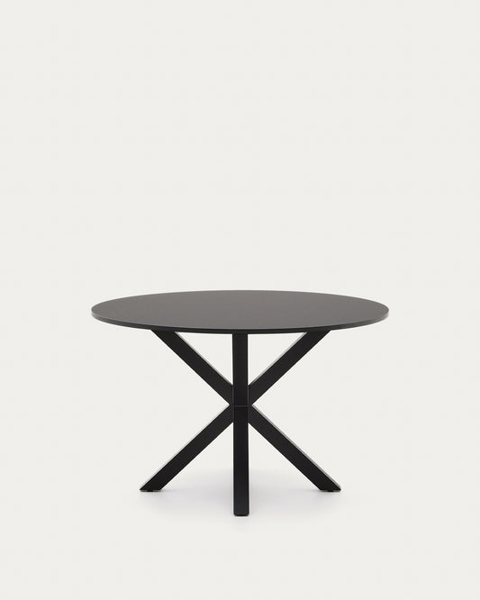 Table ronde Argo en MDF laqué noir et pieds en acier finition noire Ø 120 cm