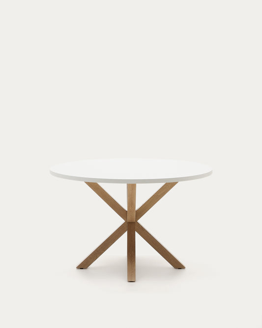 Table ronde Argo en mélaminé finition blanche et pieds en acier effet bois Ø 120 cm