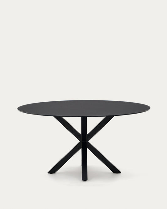 Table ronde Argo en verre noir avec pieds en acier finition noire Ø 150 cm