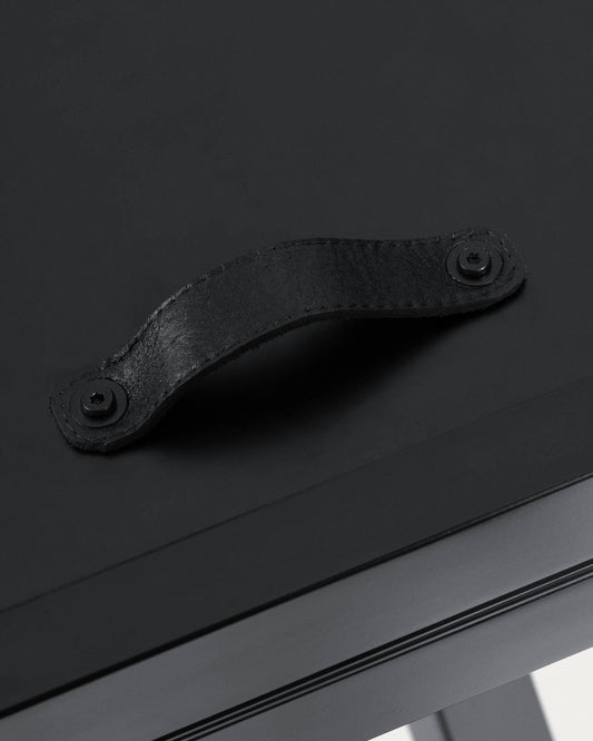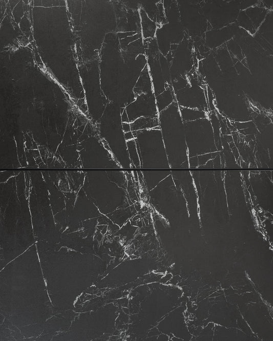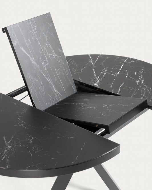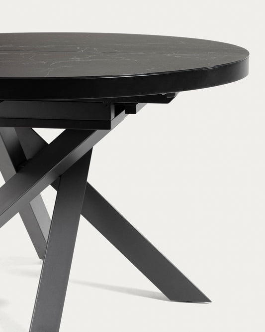 Table ronde extensible Vashti Ø 120 (160) cm en grès cérame et pieds en acier noir