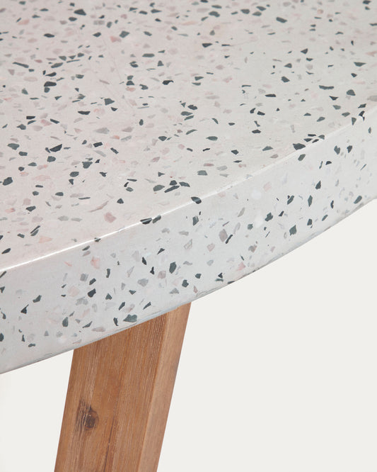 Table ronde Shanelle en terrazzo blanc et bois d'acacia Ø 120 cm