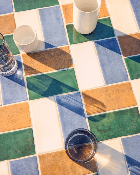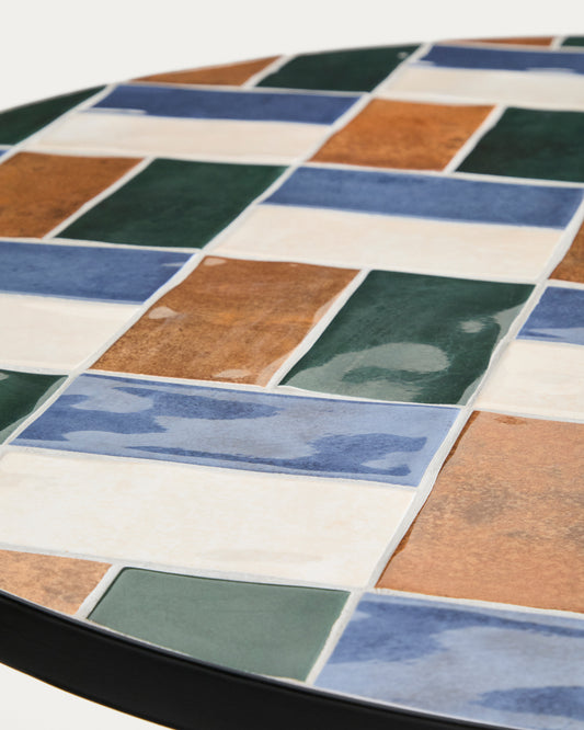 Table ronde Tella en acier galvanisé graphite et carreaux multicolores Ø90 cm