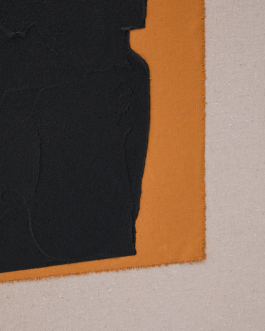 Tableau abstrait Zernu en lin orange et noir peint à la main 42 x 65 cm