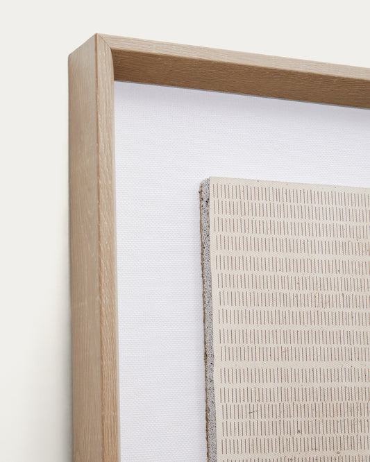 • Tableau en relief à différentes hauteurs dans des couleurs neutres.