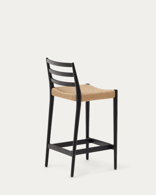 Tabouret Analy dossier en bois de chêne finition noire et assise en corde 70 cm FSC 100 %