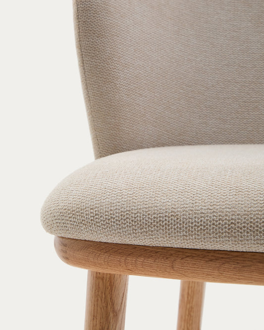 Tabouret Ciselia chenille beige et bois de frêne finition ton naturel FSC Mix Credit 65 cm
